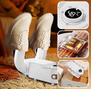 Su diseño compacto y ligero lo convierte en el aliado perfecto para tu hogar o viajes, permitiéndote secar zapatos, botas, guantes, medias y más en pocos minutos. Gracias a su sistema de disipación de calor porosa, garantiza un secado constante sin dañar el material.